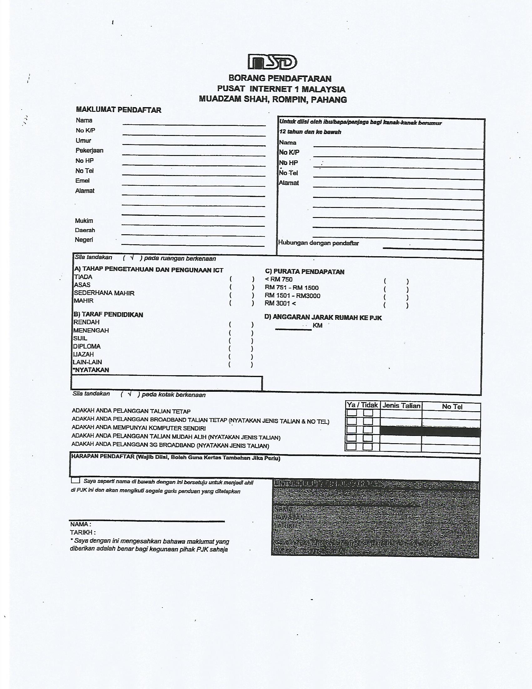 PENDAFTARAN PUSAT INTERNET 1MALAYSIA MUADZAM SHAH